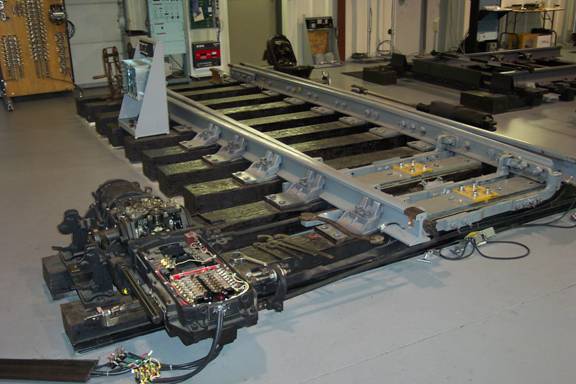 Pictured: GRS-5 switch machine with 115-pound rail points and rail panel. This can be interfaced to a tasked basic circuit assembled on a workbench or to a complete CTC/TCS simulator for enhanced training or stand alone for adjustment training sessions. |